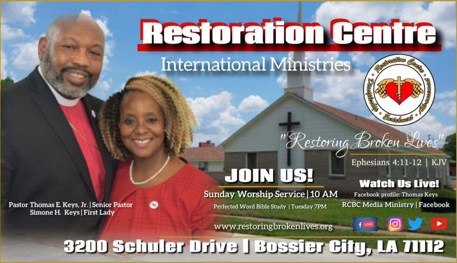 Restoration Centre Full Gospel Cathedral was born as a result of God moving on the city of New Orleans with the winds and waters of Hurricane Katrina in 2005. When Katrina hit the city Pastor Keys was the Sr. Pastor at Greater Bright Morning Star Full Gospel Baptist Church. While living in Bossier City months later confused, frustrated, depressed and aggravated Bishop Paul S. Morton (Presiding Bishop of Full Gospel International) came to Shreveport to minister and Pastor Keys heard God speak this ministry into existence. This church has been called to Bossier City, Louisiana “for such a time as this” to “Restore Broken Lives.”